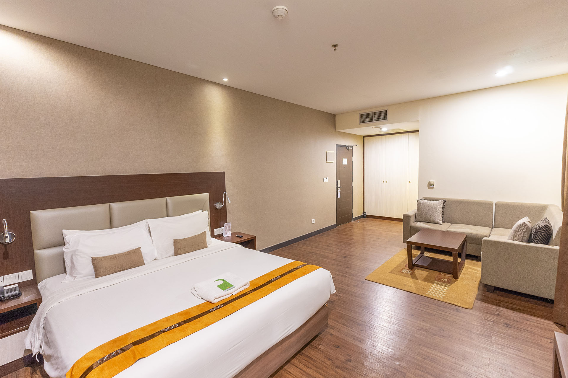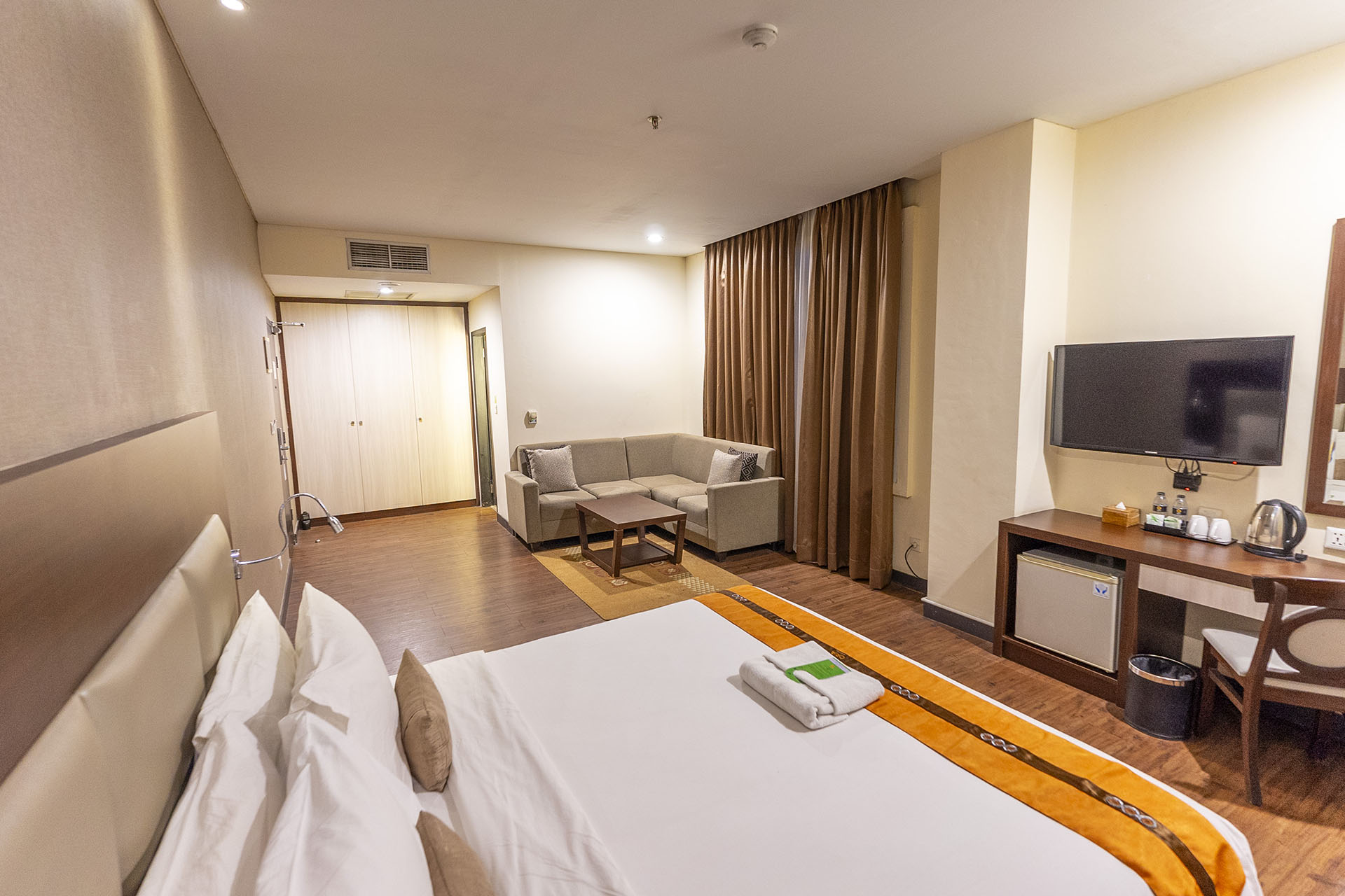 For Executives on the go, this is the perfect room. The living room area provided is also perfect for small meetings, or as your work station.