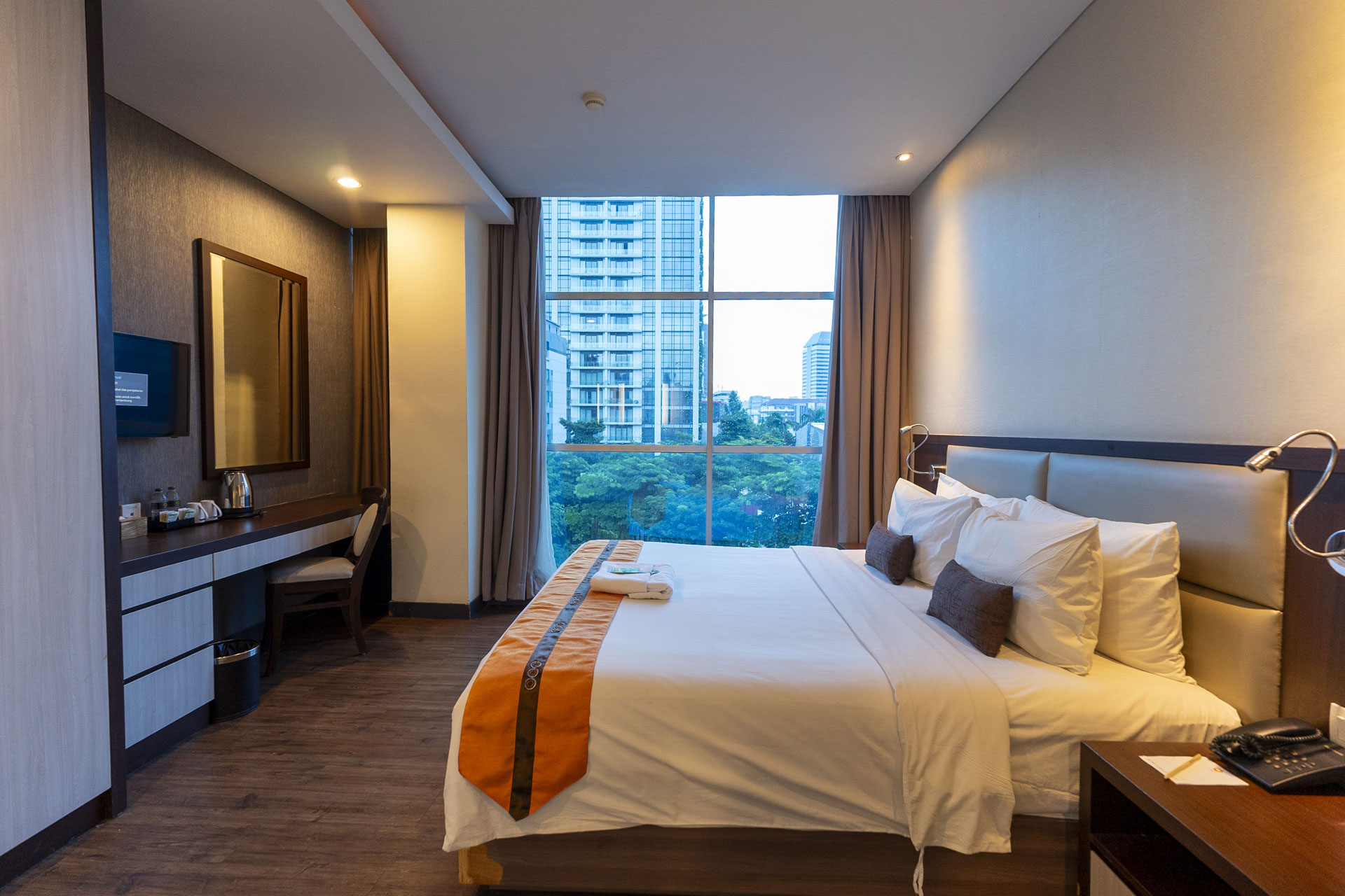 For guest who wants a great view of Jalan Thamrin, this is the room for you. At night, you will be able to enjoy the lights of Jakarta busiest street, all in the comforts of your room.